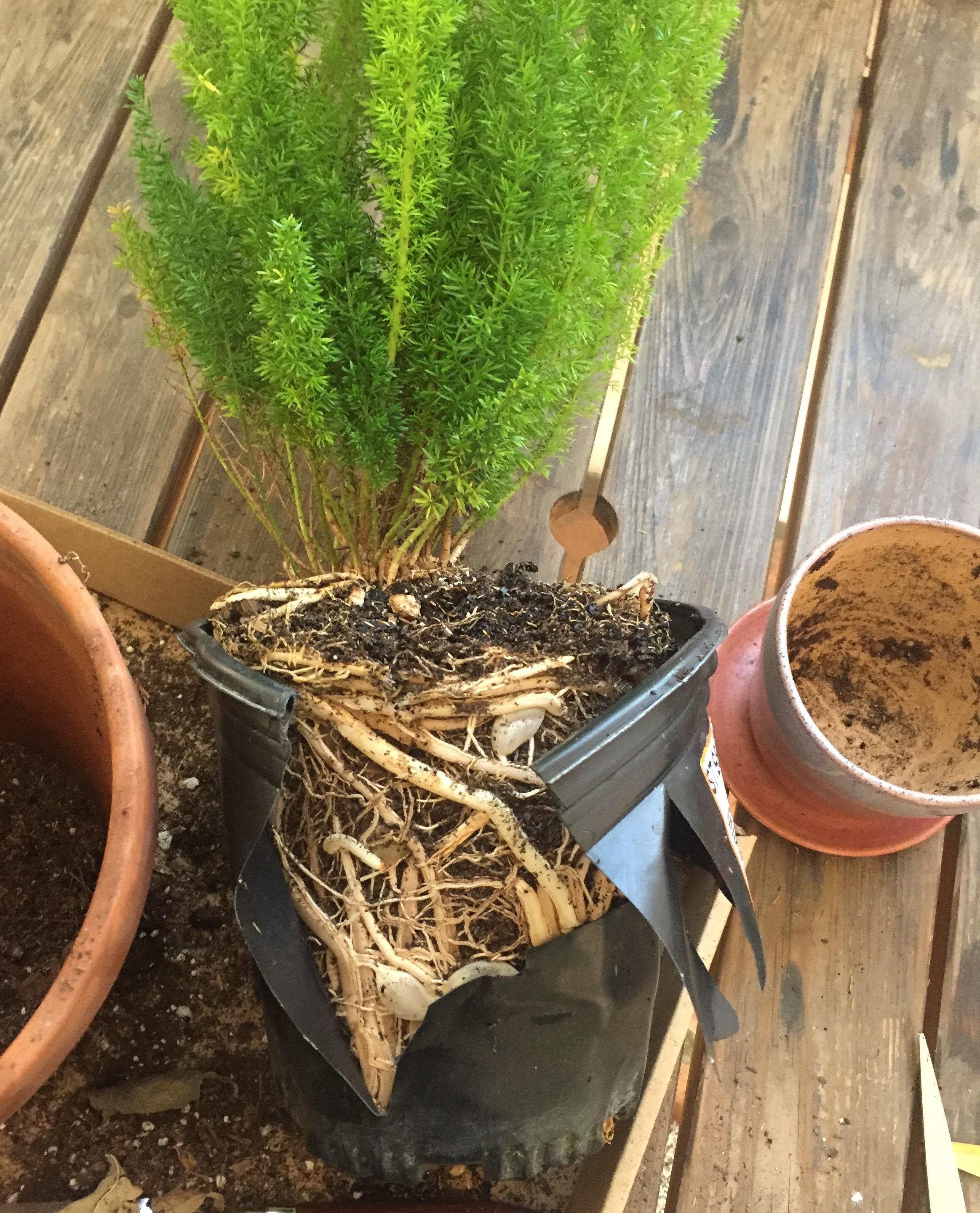 If you choose to repot the asparagus fern section, it is imperative that you pay attention to the bulblets growth. When the fern grows large, the root mass may prevent water movement. Keep the potting mix barely moist.